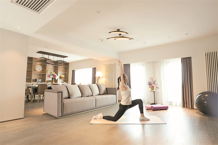 公寓房间采用集中新风系统,经初效过滤、静电除尘、紫外杀菌、定温加湿 处理的新风送至每间客房,使整体居家的舒适度得到进一步提升。为了提高居 住体验和便捷服务,客房内配有中央净水系统及优质的无线上网设备。