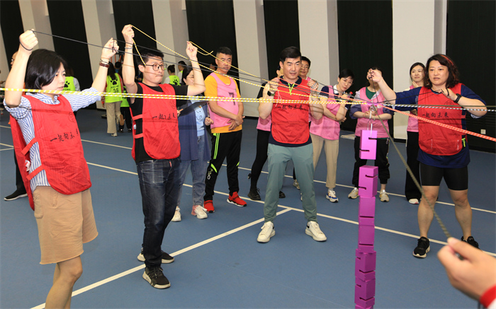 每批员工分成10队。每队队长调兵遣将,队员们出谋划策,分工协作、齐心合力完成每一项任务。比赛过程紧张、激烈,大家在相互鼓励、相互配合中收获了信任,在你追我赶中激发了斗志。场馆内洋溢着青春、欢乐、热情和积极向上的浓厚气氛。