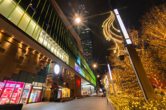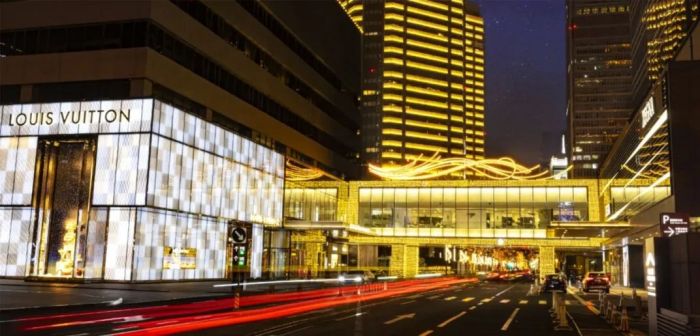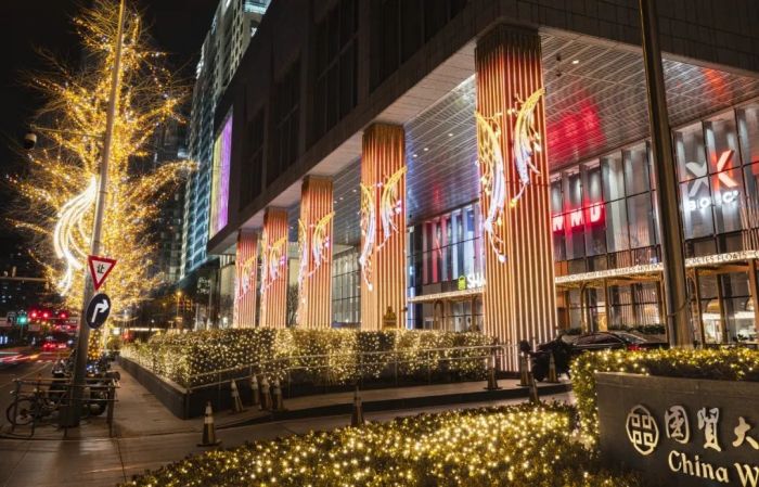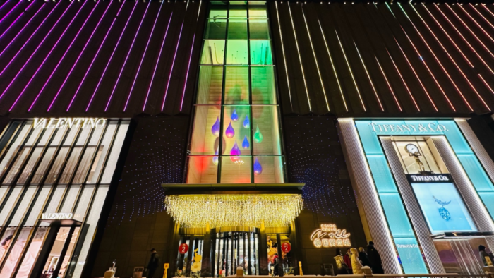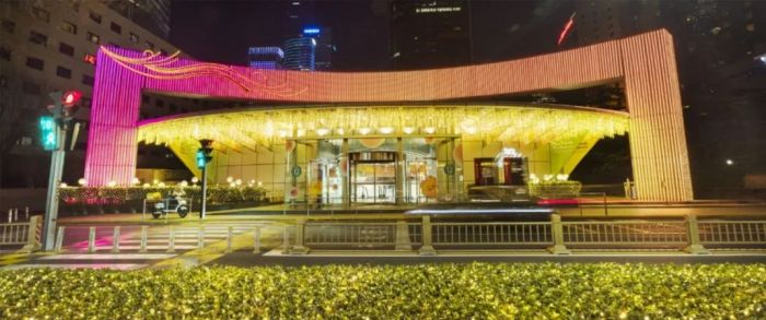 ½áºÏ¡°ÒøºÓÂä¾ÅÌ족ÒÕÊõ×°Öã¬Á½²àÂ¥ÌåÒÔÐǿյÆÓªÔìÐǹâèè²µÄÒøºÓ£¬ÖмäÃÅÍ·ÓÃ×ÔÈ»´¹ÂäµÄµÆÁ±ÒÔ¼°°×É«ÉÁ˸µÆÖéµã׺£¬¶àÖÖµÆÊλã¾ÛÒ»Æð£¬ÕûÌå´òÔì³öèè²ÉÁÒ«¡¢¸¡¹âÒ«½ðµÄЧ¹û¡£