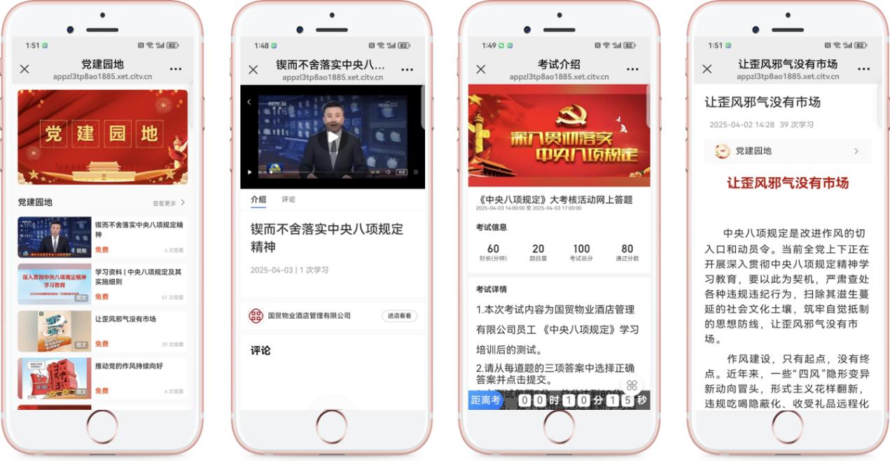 连日来,物管公司党总支聚焦主题、注重实效,精心部署安排,推动学习教育有效有序开展。通过主题学习、观看视频、在线考试等多种形式,扎实开展深入贯彻中央八项规定精神的活动,教育全体党员并引导广大员工锲而不舍落实中央八项规定精神,确保学有质量、查有力度、改有成效。