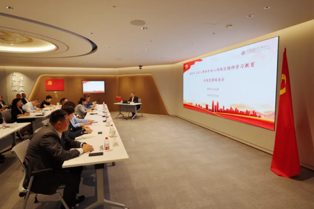 会议传达了习近平总书记在中共中央政治局第二十一次集体学习时的重要讲话精神和商务部深入贯彻中央八项规定精神学习教育党课报告会暨警示教育大会精神。中心党委委员、纪委委员,各总支、支部委员,中心团委班子成员等80余人参加会议。