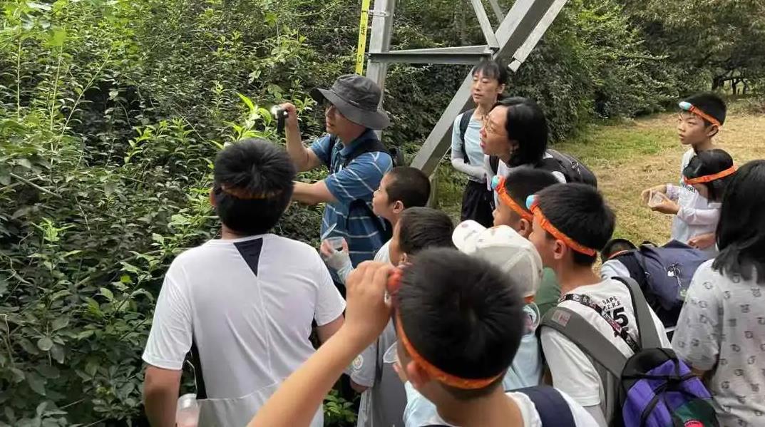 家长与孩子们佩戴头灯,在导师带领下,使用观察盒等工具,近距离观察夜间昆虫的生活习性,学习生态知识。