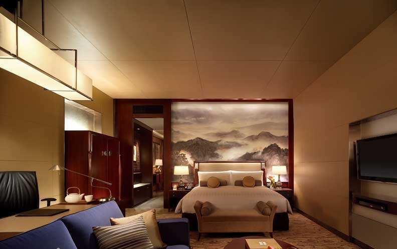 Located from Levels 64 to 77, all guestrooms and suites at China World Summit Wing,Beijing have floor-to-ceiling windows and feature classic wooden decor with fine furnishings and subtle Chinese touches. Averaging 65 square metres in size, all come with stunning city views;and provide wired and wireless broadband Internet access, 49-inch flat- screen televisions, Nespresso coffee machines, designer bed linens and bath accessories. The rooms are designed with residential comfort in mind, with distinct areas for rest, leisure and work, They are cosy with mood lighting, large feather duvets and exquisite amenities.