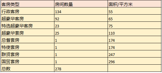 ¡¡ ¹úó´ó¾ÆµêµÄ278¼ä¿Í·¿·Ö²¼ÓÚ64²ãÖÁ77²ã£¬ËùÓз¿¼ä¾ù¾¹ý¾«ÐÄÉè¼Æ£¬ÒÔÈ·±£´ø¸ø¿ÍÈËÊæÊÊÓë·½±ã£ºÓµÓоø¼ÑÊÓÒ°£¬ÈÿÍÈËÔÚ¿Í·¿ÄÚ¼´¿ÉÒ»ÀÀ³ÇÊÐÃÀ¾°£»¿Õ¼ä¿í³¨£¬¿ÉͬʱÂú×ã¿ÍÈ˵ÄÐÝÏк͹¤×÷ÒªÇó£»ÁíÍ⻹Å䱸ÓÐ49Ó¢´ç´¿Æ½µçÊÓ¡¢NespressoÆ·ÅÆ¿§·È»ú¡¢¾«ÐÄÉè¼ÆµÄÇÞ¾ßÓÃÆ·ºÍ¸ßÑŵÄÎÀÔ¡ÓÃÆ·¡£¿Í·¿Ãæ»ý¾ù´óÓÚ55ƽ·½Ã×£¬Îª±±¾©ÊÐÄÚ¿Í·¿Ãæ»ýÖ®×î¡£